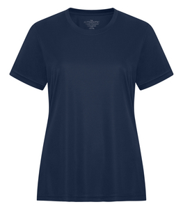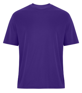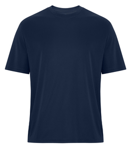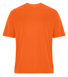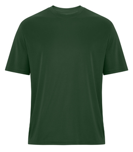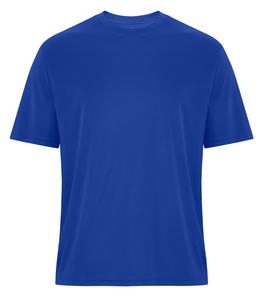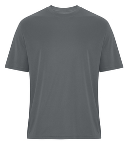 - 6.4 oz, 100% performance polyester interlock with wicking technology