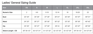 Ladies sizes only up to XS-3XL