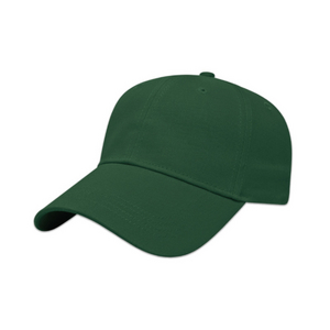 Six panel structured cap. Lightweight brushed cotton twill. Fabric strap with two piece hook & loop closure.